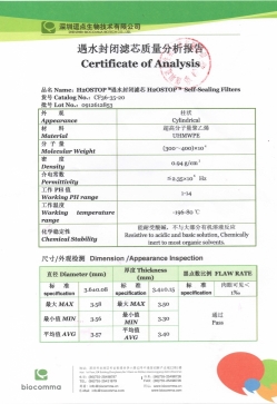 逗点生物提供从UHMW-PE原料到成品的完整质量分析报告(COA)。